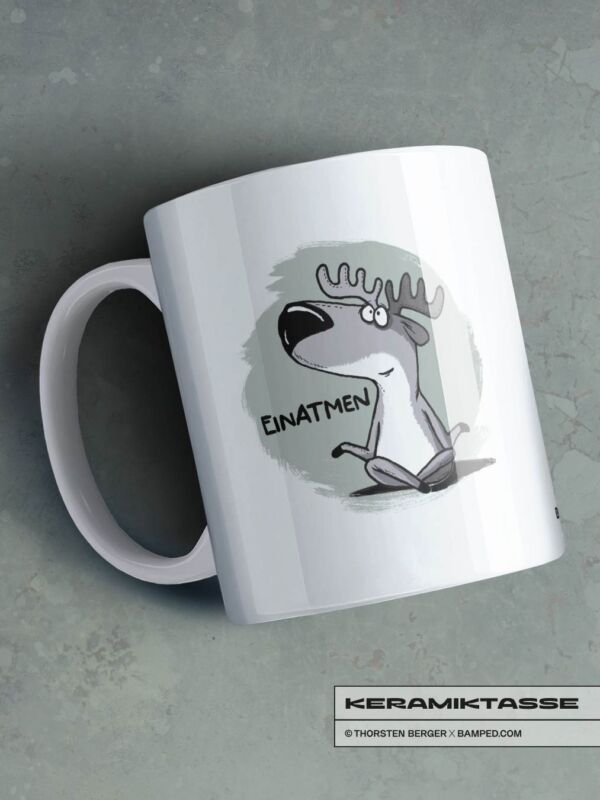 KERAMIKTASSE „RENTIER RUDI / EINATMEN AUSATMEN“