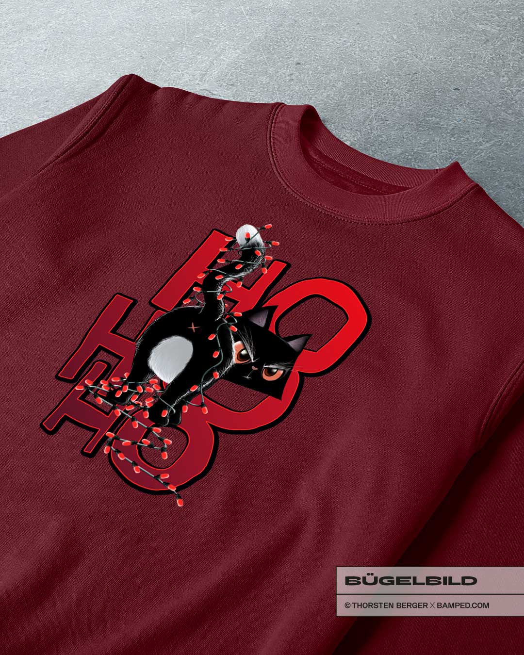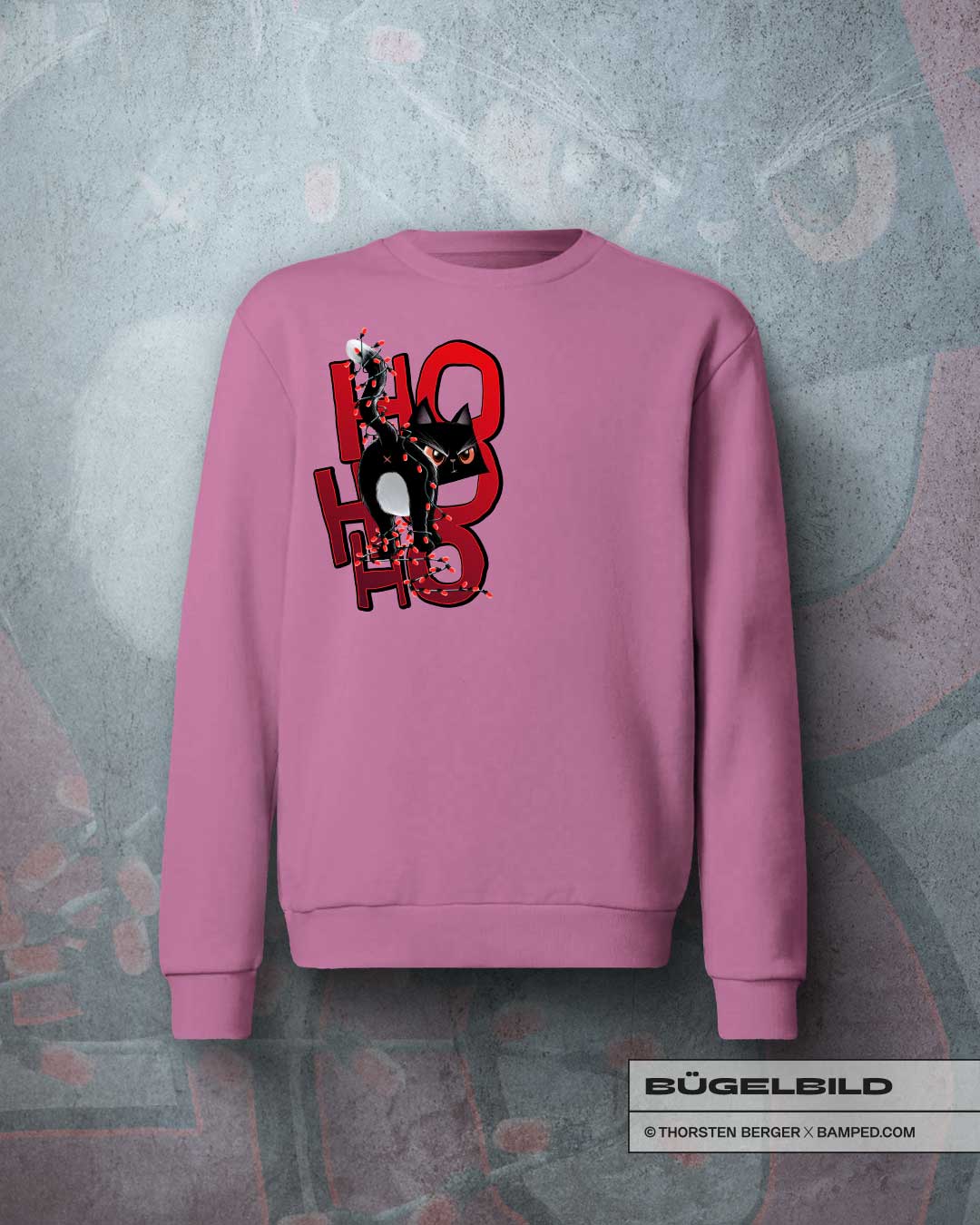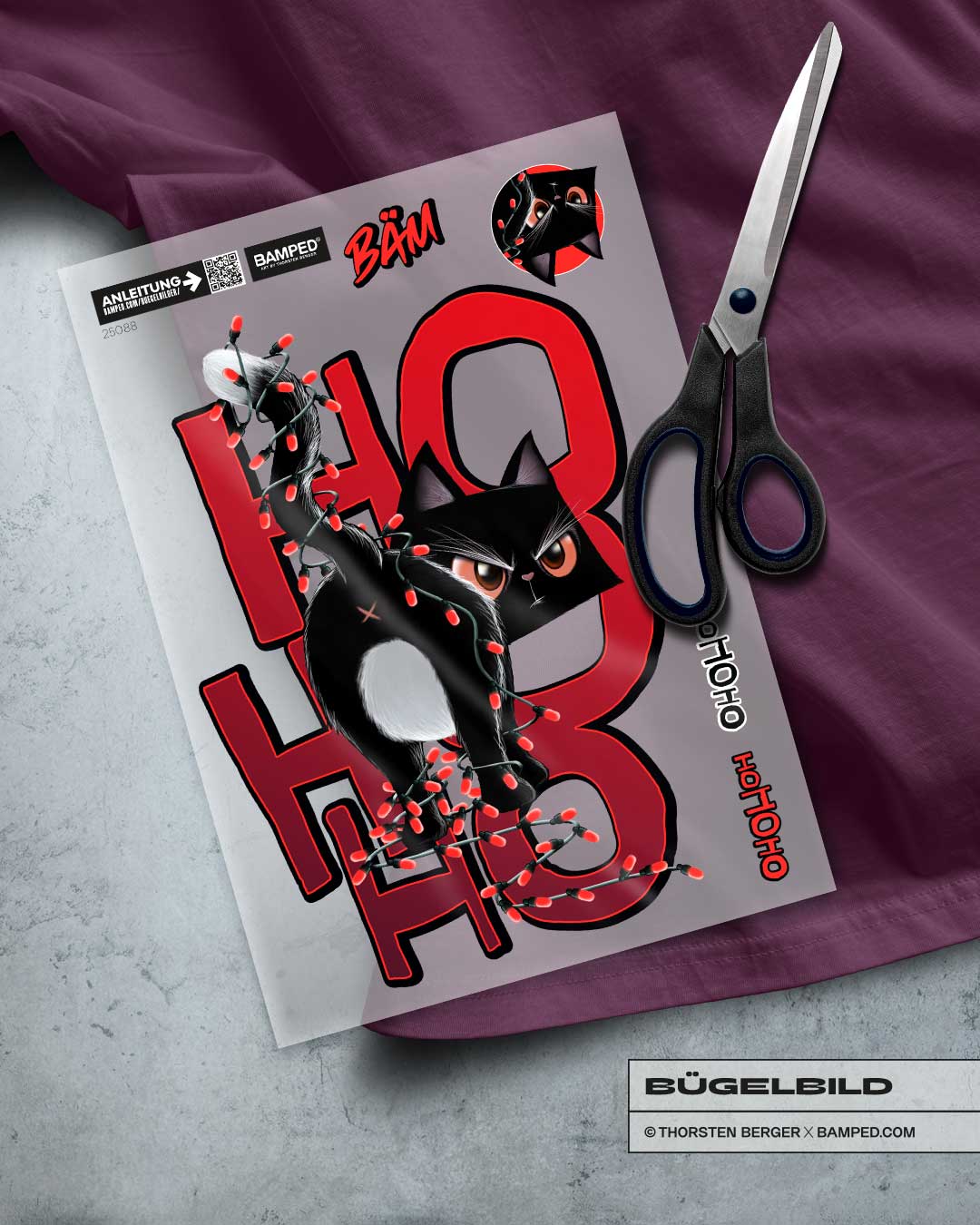 - Motiv: HoHoHo. Ups, bin ich da etwa zufällig an dieser Lichterkette hängen geblieben? …oder HOHOHO. Na toll: Schon wieder Weihnachts-Tamtam. oder vielleicht fällt dir ja auch noch etwas ganz anderes ein?!? Auf jeden Fall ist dieses Motiv mit der grummeligen schwarzen Katze ein echt cooler Eyecatcher.