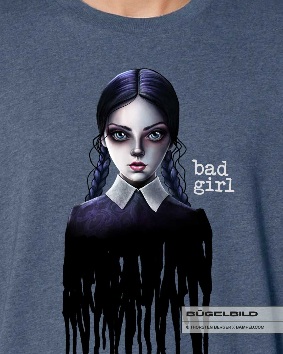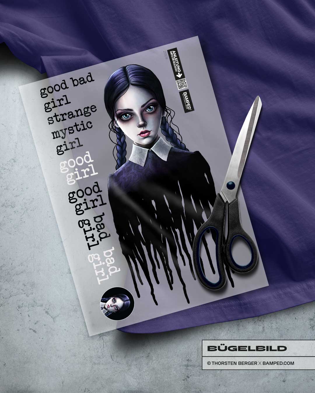 - Motiv: bist du ein „GOOD GORL“ oder ein „BAD GIRL“? Mit dem handgezeichneten Motiv kannst du auf jeden Fall an allen Tagen ein richtig cooles Statment setzen. …und das nicht nur an „Wednesdays“… ;-)