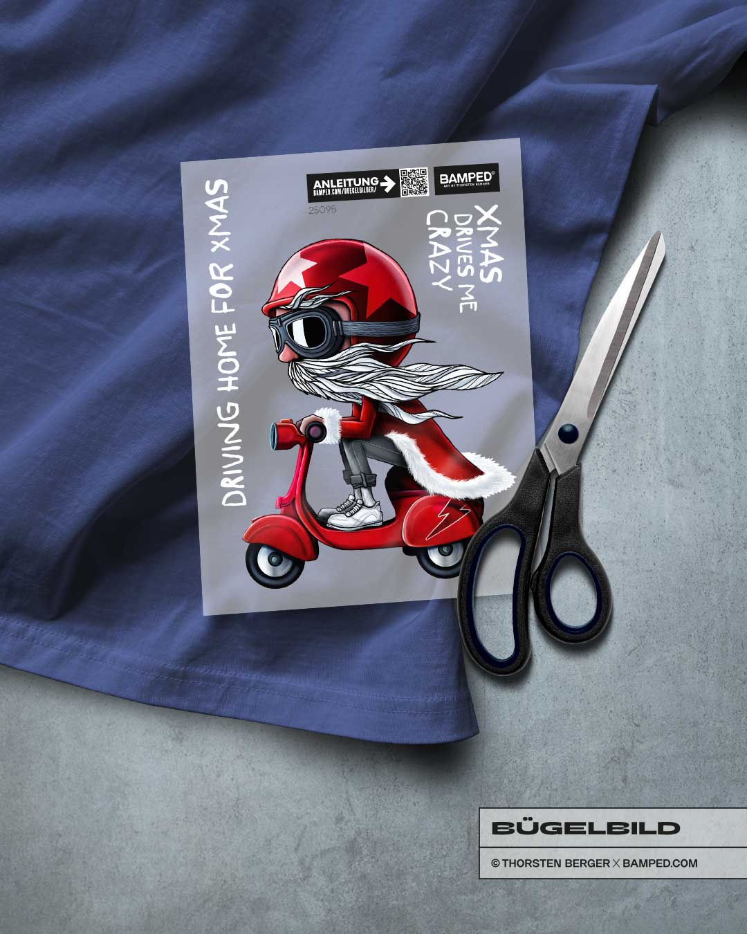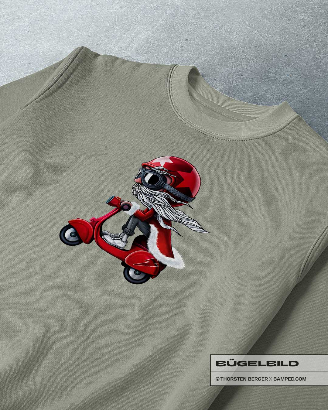 • Motiv: Cruised da Santa auf dem Moped? Oder ist das nur ein Double? ;-) Auf jeden Fall mal ein anderes Weihnachtsmann-Motiv, womit du nicht nur XMas-Sweater wunderbar pimpen kannst.