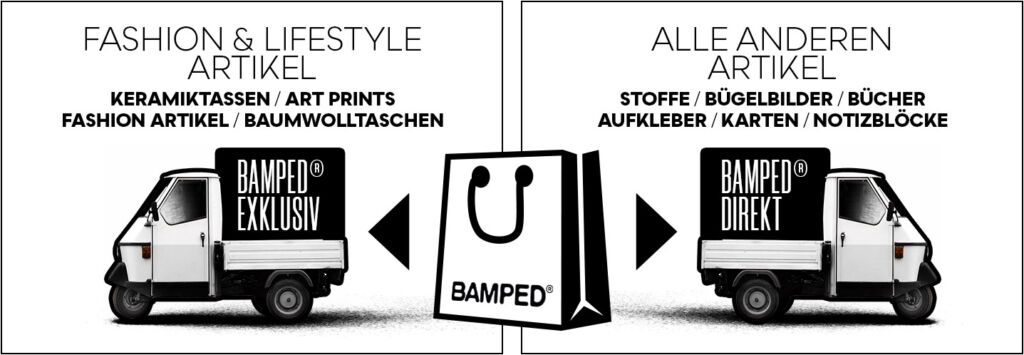 Unsere Produkte aus der Kategorie „FASHION & LIFESTYLE“ (KERAMIKTASSEN / ART PRINTS / T-SHIRTS / HOODIES / SWEATER / BABY BODIES / BAUMWOLLTASCHEN) lassen wir nach deiner Bestellung ganz individuell nur für dich von unserem Kooperationspartner in Deutschland anfertigen. Anschließend werden die Unikate druckfrisch von dort zu dir nach Hause verschickt. Auf diese Weise können wir dir ganz exklusiv Produkte mit Original BAMPED®-Designs anbieten: in top Profiqualität in breiter Design-Auswahl mit geringen Lager- & Produktionskosten ohne mehrfache Transportwege Alle anderen Produkte wie STOFFE / BÜCHER / BÜGELBILDER / GRUSSKARTEN / NOTIZBLÖCKE / AUFKLEBER sind bei uns im BAMPED® SHOP Regal vorrätig und werden direkt von uns an dich verschickt. Wir finden das absolut nachhaltig und ein „Perfect Match“ für alle. Daher subventionieren wir auch zum Großteil für dich die Versandkosten, damit du dich darauf verlassen kannst, für den Versand bei uns nur maximal 6,90 € zu bezahlen – egal was du bestellst. Ab 150,00€ Warenwert (NUR physische Produkte) bestellst du übrigens komplett versandkostenfrei innerhalb deutschlands. DIGITALE ARTIKEL kannst du natürlich immer zu jeder Bestellung hinzufügen – sie sind als Sofortdownload sowieso versandkostenfrei. Unsere Produkte aus der Kategorie „FASHION & LIFESTYLE“ (KERAMIKTASSEN / T-SHIRTS / HOODIES / SWEATER / BAUMWOLLTASCHEN) lassen wir nach deiner Bestellung ganz individuell für dich von unserem Kooperationspartner in Deutschland anfertigen. Anschließend werden die Unikate druckfrisch von dort zu dir nach Hause verschickt. Auf diese Weise können wir dir Produkte mit Original BAMPED®-Designs exklusiv anbieten: mit Profiqualität in großer Design-Auswahl mit geringen Lager- & Produktionskosten ohne mehrfache Transportwege Wir finden das absolut nachhaltig und ein „Perfect Match“ für alle. :-) Alle anderen Produkte wie STOFFE / BÜCHER / BÜGELBILDER / GRUSSKARTEN / NOTIZBLÖCKE / AUFKLEBER sind bei uns im BAMPED® ART KIEZ Regal vorrätig und werden direkt von uns an dich verschickt. Eine kombinierte Bestellung mit „FASHION & LIFESTYLE“-Produkten + Produkten aus einer anderen Kategorie bedeutet entsprechend 2x Versandkosten. DIGITALE ARTIKEL kannst du natürlich immer zu jeder Bestellung hinzufügen – sie sind als Sofortdownload versandkostenfrei.