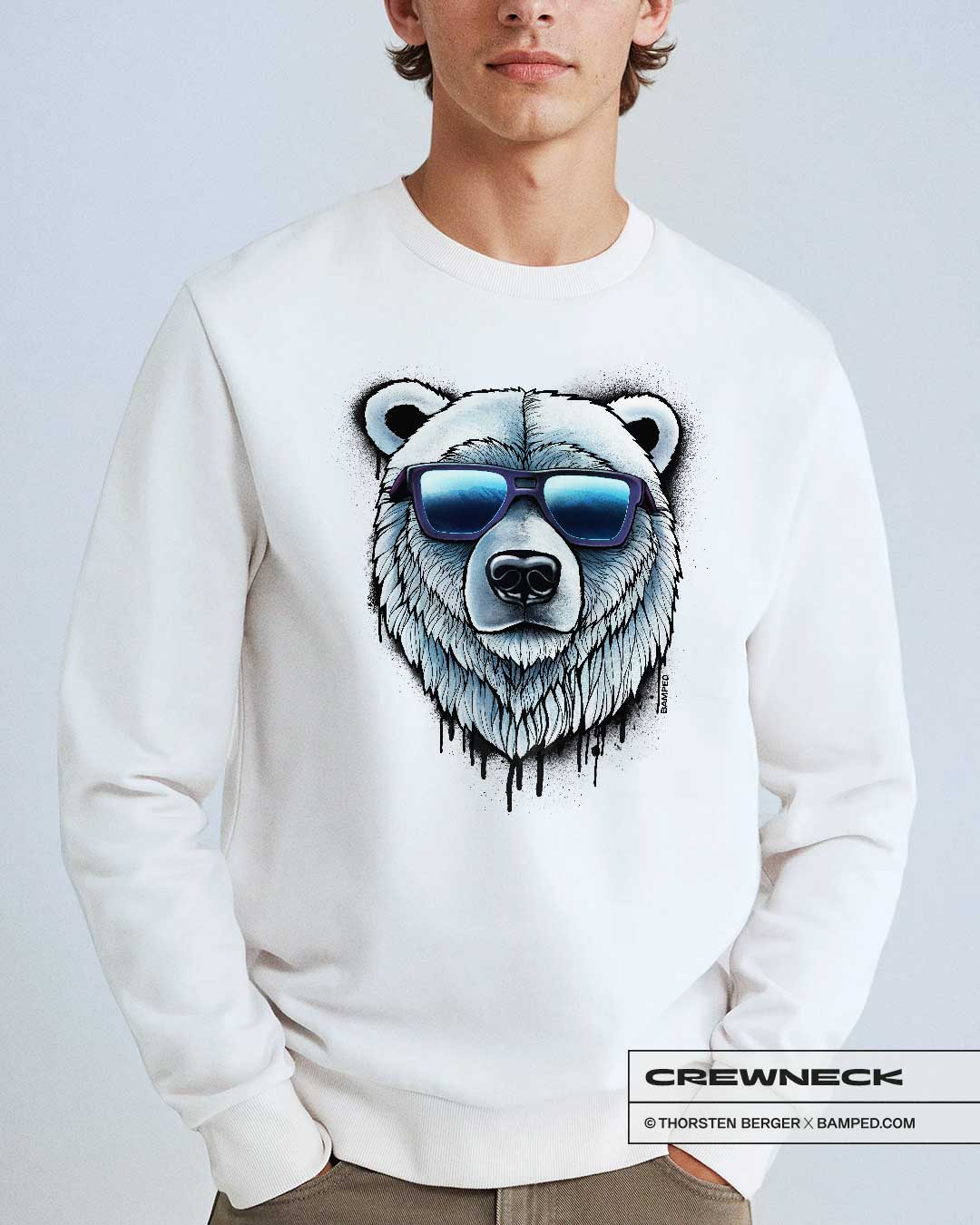 - Motiv: Was für ein cooler Print, oder? Dieser handgezeichnete Eisbär mit spiegelnder Sonnenbrille im Urban Art Style macht sich absolut lässig auf dem weichen Sweater. Als Perfect Match zu dem bärigen Crewneck ergänzen Jeans und Sneaker deinen neuen lässigen Casual Style.
