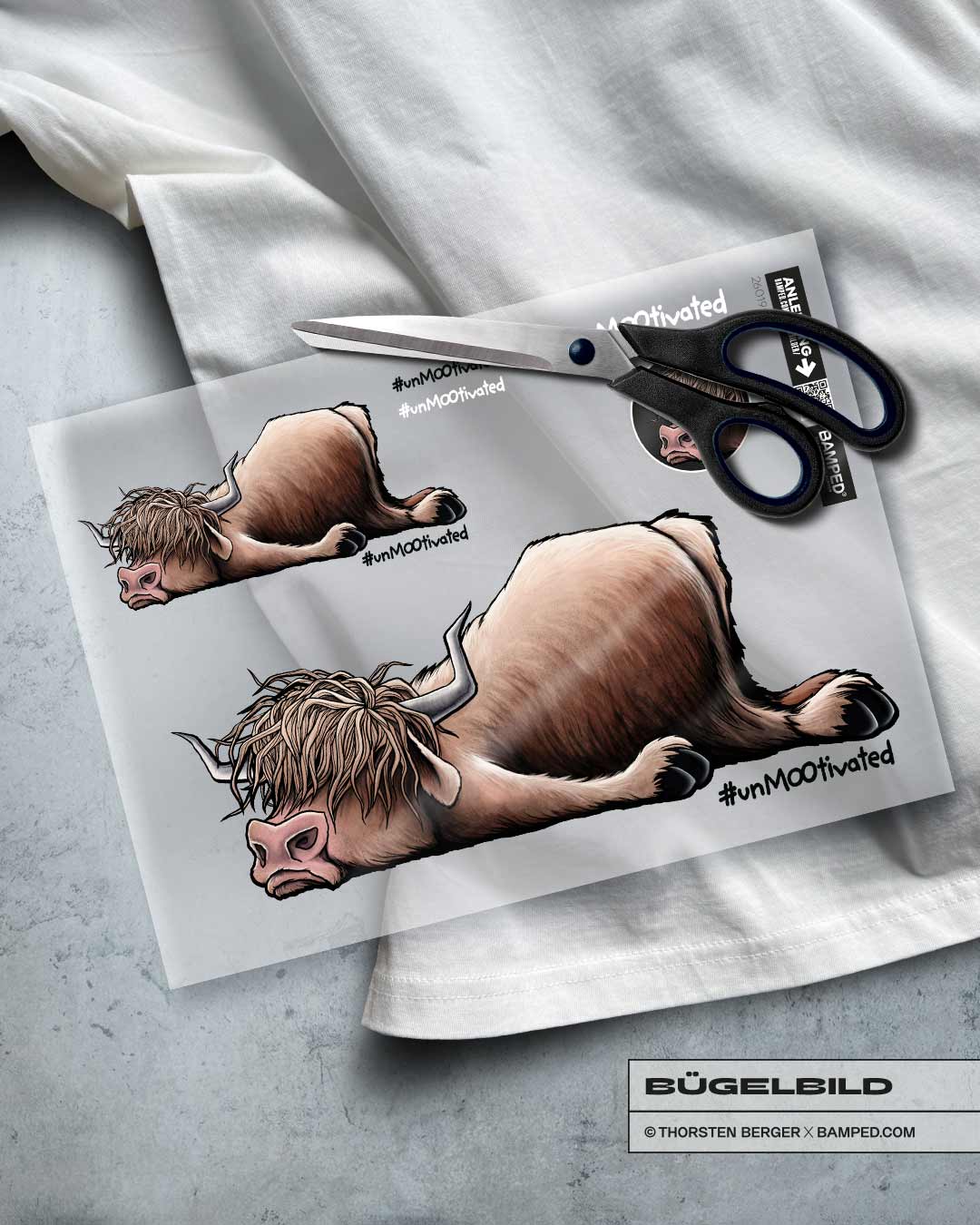 BÜGELBILD „UNMOOTIVATED“ / HOCHLANDRIND