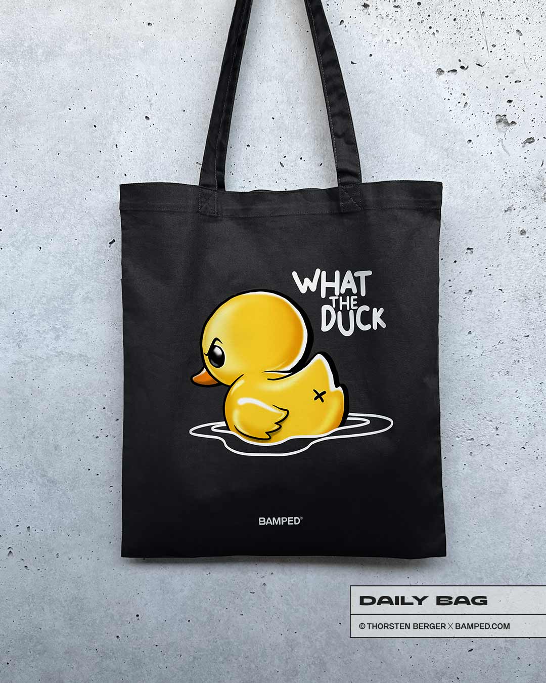 - Motiv: WHAT THE DUCK! Was für ein cooler, lustiger Eyecatcher. Die kleine grummelige Ente macht bei allen Gelegenheiten im Alltag Spaß und zieht garantiert so manche Blicke auf sich…. So wird aus einem praktischen Alltagsbegleiter ein außergewöhnliches Statement-Artpiece. ;-)